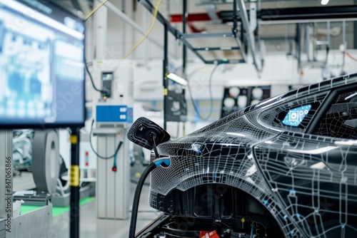 Electric Car Receiving Software Updates at a High-Tech Service Center for Advanced Vehicle Maintenance