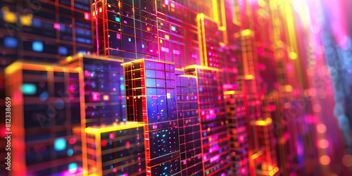Electric City Walls: A vibrant, neon-lit landscape of buildings adorns these urban walls, showcasing the technological prowess and energy of a modern metropolis.