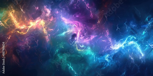 Electric colors and patterns forming a vibrant space-inspired visual.