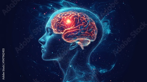 Electric Energy Visualization of a Human Brain With Vibrant Neural Connections Portrayed in a Dark Cosmic Background