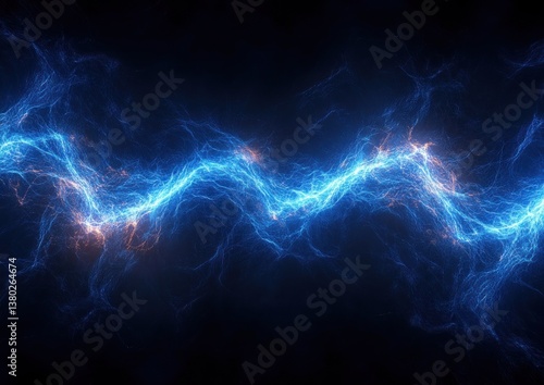 Electric Energy Waves Abstract Background with Blue Lightning and Neon Fractal Design