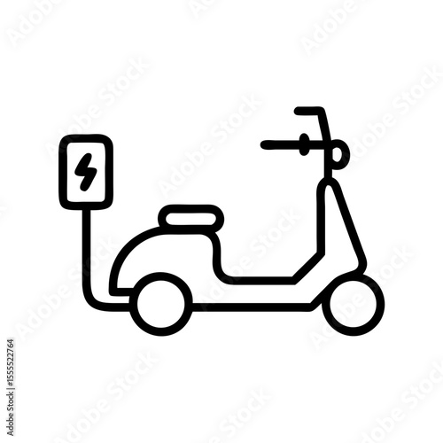 Electric scooter charging with power plug and lightning symbol icon. Eco friendly transport concept. Vector outline icon for mobile app, web design