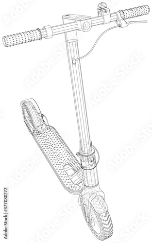 Electric Scooter Wire-frame. The layers of visible and invisible lines are separated. EPS10 format. Vector created of 3d.