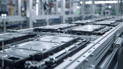 Electric vehicle battery cells are assembled on a mass production line