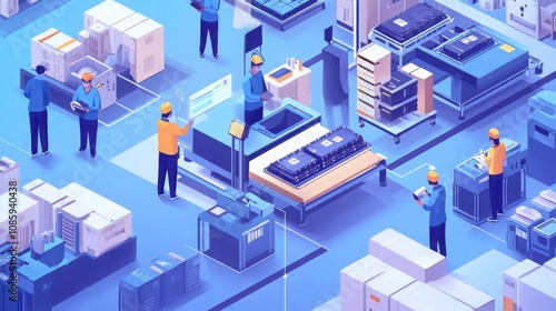 electric vehicle battery factory, workers assembling parts, innovation in clean energy technology