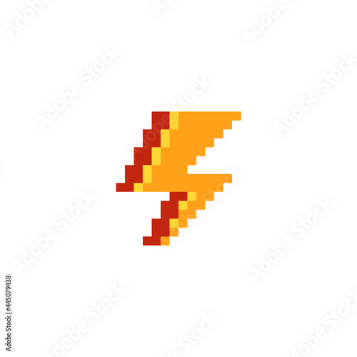 Electricity icon. Flash lightning. High voltage logo. Charging icon. Pixel art style design. 8-bit sprites. Isolated vector illustration.
