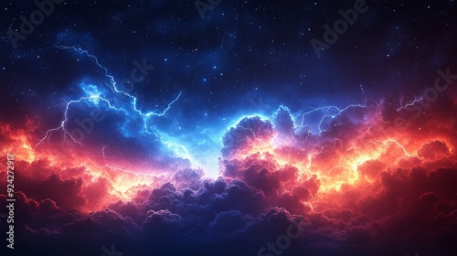 Electrifying Sky. Vibrant thunderstorm with red and blue lightning.