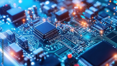 Electronic components and microcontroller arranged methodically, emphasizing modern design and technology.