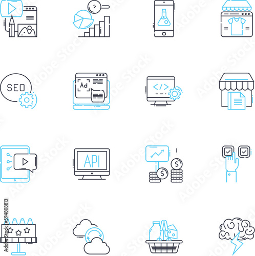 Electronic coordination linear icons set. Synchronization, Automation, Integration, Streamlining, Orchestration, Interoperability, Collaboration line vector and concept signs. Connectivity,Synergy