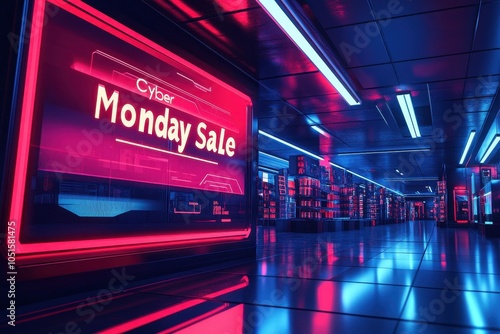 Electronic Storefront with Sales: A digital storefront page showing tech products under a large "Cyber Monday Sale" banner, with animated price slashes.