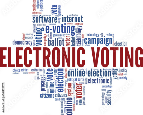 Electronic Voting, e-voting word cloud conceptual design isolated on white background.