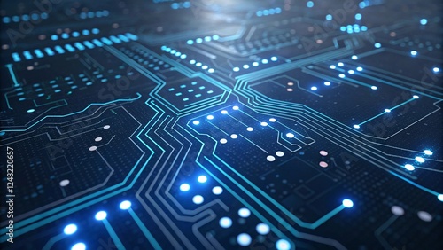Electronic Web: Detailed Circuit Board with Glowing Traces