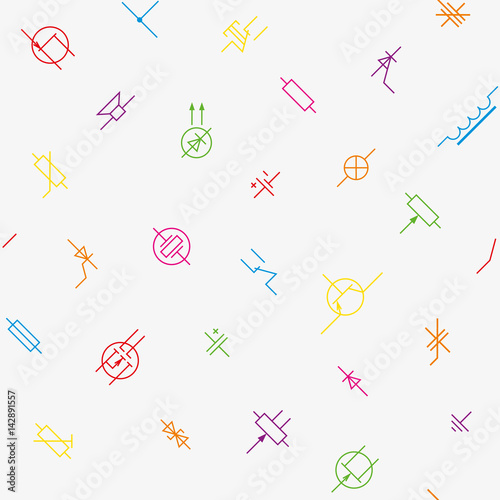 Electronics circuit components symbols seamless wallpaper pattern.