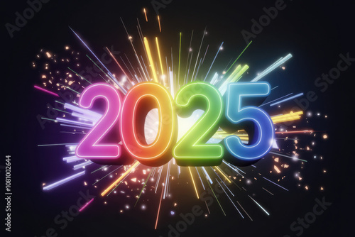 Elegant 2025 Typography with Colorful Explosion Background. Rainbow 2025 New Year Celebration