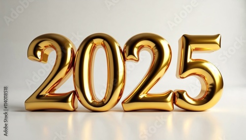 Elegant 3D representation of the New year '2025' in polished gold with realistic lighting