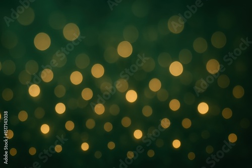 Elegant abstract bokeh banner background featuring soft out-of-focus golden light circles shimmering against a rich defocused emerald green backdrop.