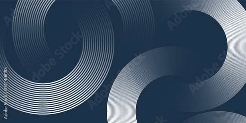 Elegant abstract golden geometric lines on dark blue background. Glowing gold circle lines pattern. Modern design element modern arts background black