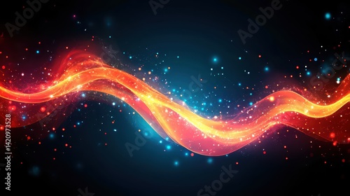 Elegant abstract red waves with fluid curves, shimmering particles and glowing edges, deep cinematic light, dark dreamy blur