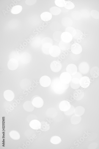 Elegant Abstract Silver Christmas Background with white bokeh lights for Holiday Poster, Banner, Ad, Card or invitation..