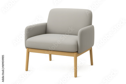 Elegant armchair in light grey isolated on transparent backdrop, modern design