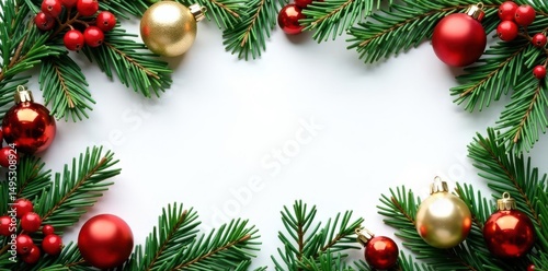 Elegant arrangement of pine, red berries, and gold ornaments, creating a charming Christmas frame , image, holiday