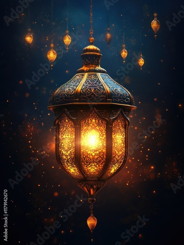 Elegant banner design showcases intricate lanterns illuminated by a warm glow, perfect for celebrating the Islamic New Year