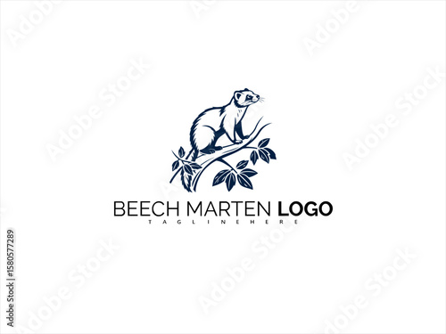 Elegant Beech Marten Vector Illustration in Monochrome Style. Perfect for Eco Packaging, Conservation Logos, and Wilderness-Inspired Visual Identity Systems.