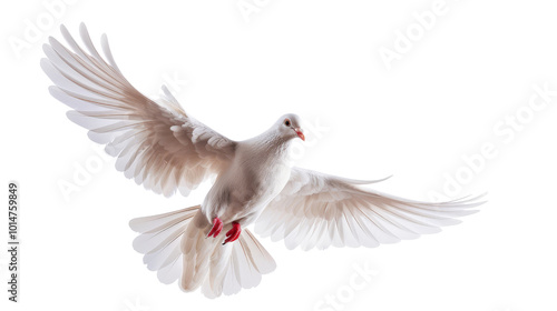 Elegant Bird in Flight with Outstretched Wings and Red Feet.