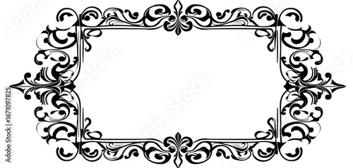 Elegant black and white ornate square frame, perfect for design, chic, shape