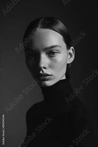 Elegant Black and White Portrait of a Woman in a Turtleneck