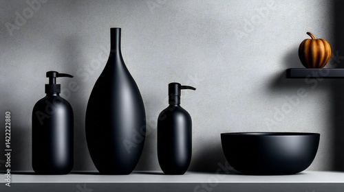 Elegant black bathroom accessories with a minimalist and contemporary aesthetic