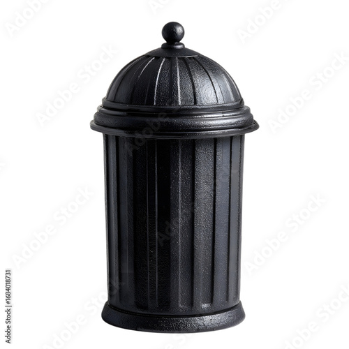 Elegant Black Cast Iron Waste Bin Urban Design Element isolated on transparent background