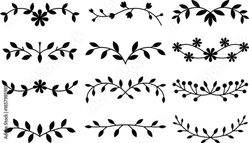 Elegant Black Floral Swirl Dividers: Simple Vector Graphics for Design