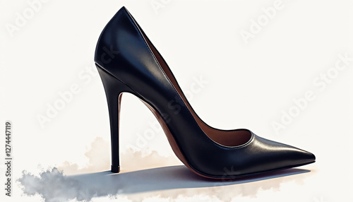 Elegant black high-heeled shoe silhouette with smooth texture and soft background with copy space