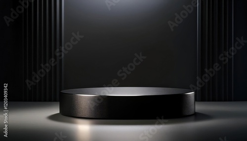 Elegant Black Minimalist Podium with Smooth Texture and Mysterious Lighting