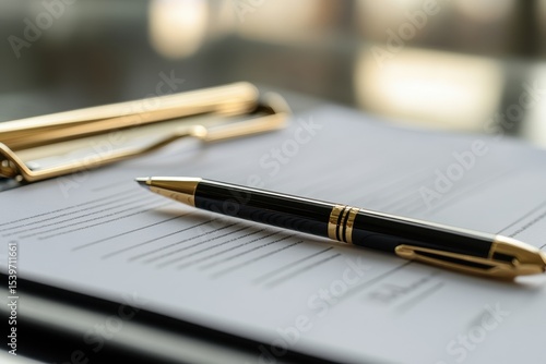 Elegant Black Pen on Document with Clipboard in Professional Setting