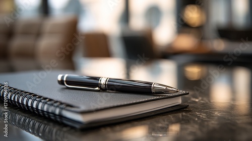 Elegant Black Pen on Notebook in Modern Office Setting. High quality