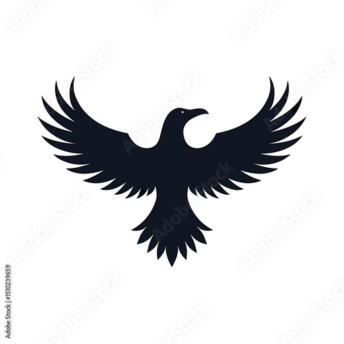 Elegant Black Raven Silhouette with Spread Wings, Minimalist Vector Illustration on White Background