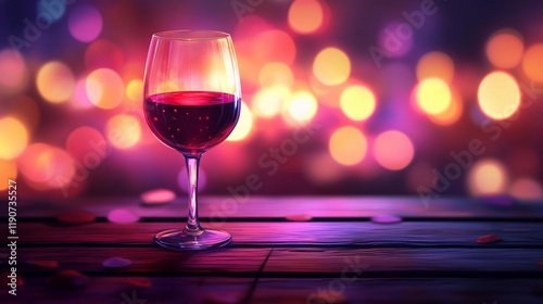 Elegant blurred bokeh lights beside wine glasses creating a romantic atmosphere.