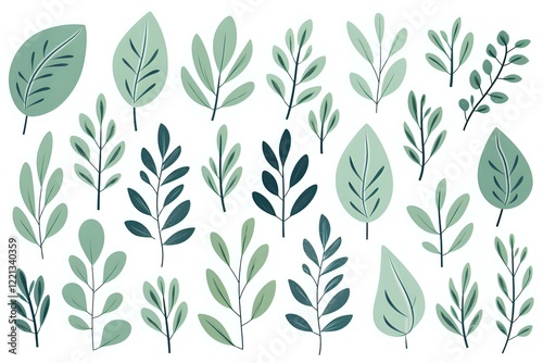 Elegant botanical elements in mint and teal colors on white background, perfect for surface pattern design, fabric prints and modern stationery projects.