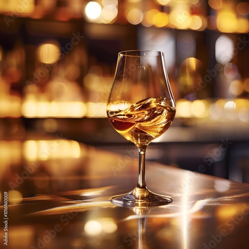 Elegant Brandy Glass with Swirling Golden Liquid on Modern Bar Counter