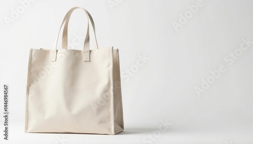 Elegant canvas shopping bag, handles up, pure white backdrop , simple, product shot, canvas