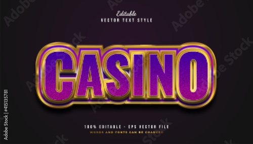 Elegant Casino Text Style in Purple and Gold with Embossed Effect