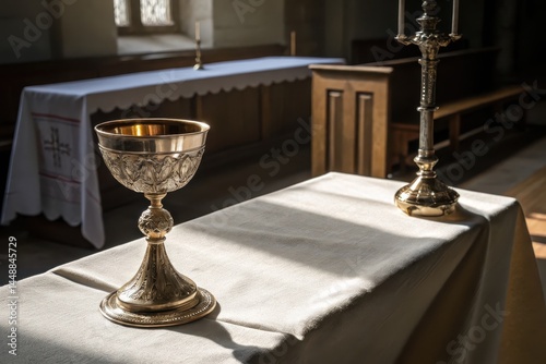 Elegant Chalice on Altar Bathed in Soft Natural Light