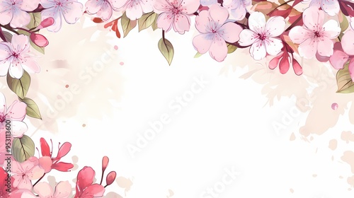 Elegant cherry blossom frame with soft pink flowers creating a serene, delicate border.