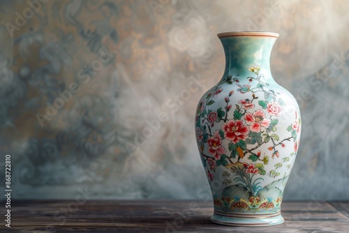 Elegant Chinese porcelain vase with floral patterns, showcasing traditional craftsmanship and vibrant colors, placed against a simple, neutral backdrop to highlight its beauty