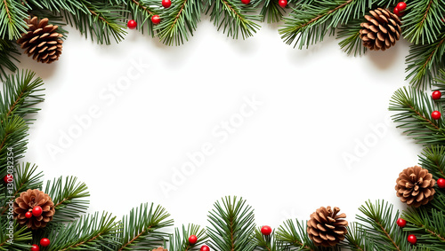 Elegant Christmas Wreath with Pinecones: Create Beautiful Holiday Card Messages with Ample Copy Space on the Left Side for Stunning Photo Stock Concepts