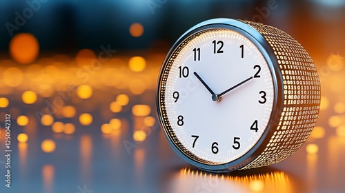 Elegant Clock Displaying Time Against Blurred Warm Light Background