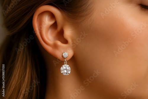 Elegant Close-Up of Sparkling Drop Earring on Woman’s Ear