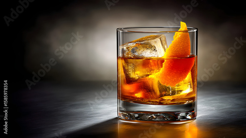 Elegant Cocktail with Ice and Citrus Garnish in Dramatic Lighting